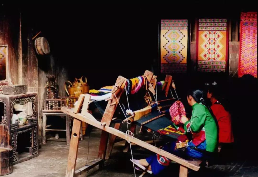 在古鎮舉辦的文化活動中,經常會有織錦技藝傳承人來此做演示。經緯線在古老的織布機上逐漸變成表現山水、人物、花鳥樹木、飛禽走獸等色彩鮮明、圖案優美、經久耐用的織錦,仿若一場在黑白琴鍵上的演奏。