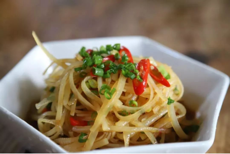 夏天最愛的土豆吃法之一便是涼拌!用土家最擅長的涼拌醬汁,把洋芋切絲拌勻,酸辣入味,開胃下飯,涼絲絲更解暑。