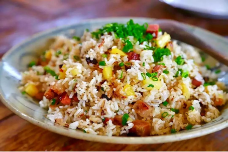 最后不得不提的是土家人人所好的主食——箜洋芋飯。柴火箜出來的臘肉洋芋飯,色澤金黃,外焦里嫩,又酥又燙,洋芋、臘肉丁、米粒,一口下去,是不同層次的噴香口感。