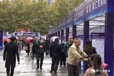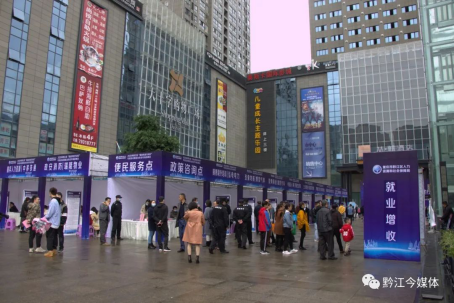 今天是周末,有著黔江解放碑之稱的大十字購物廣場人頭攢動,熱鬧非凡一場特殊的招聘會和展銷會在這里舉行。