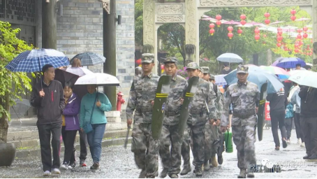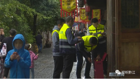 在濯水景區,民兵應急分隊的民兵們從早上8點開始,就穿梭在各個景點,協助景區管理部門維持秩序、及時排查消除各類隱患,為游客提供便民服務。