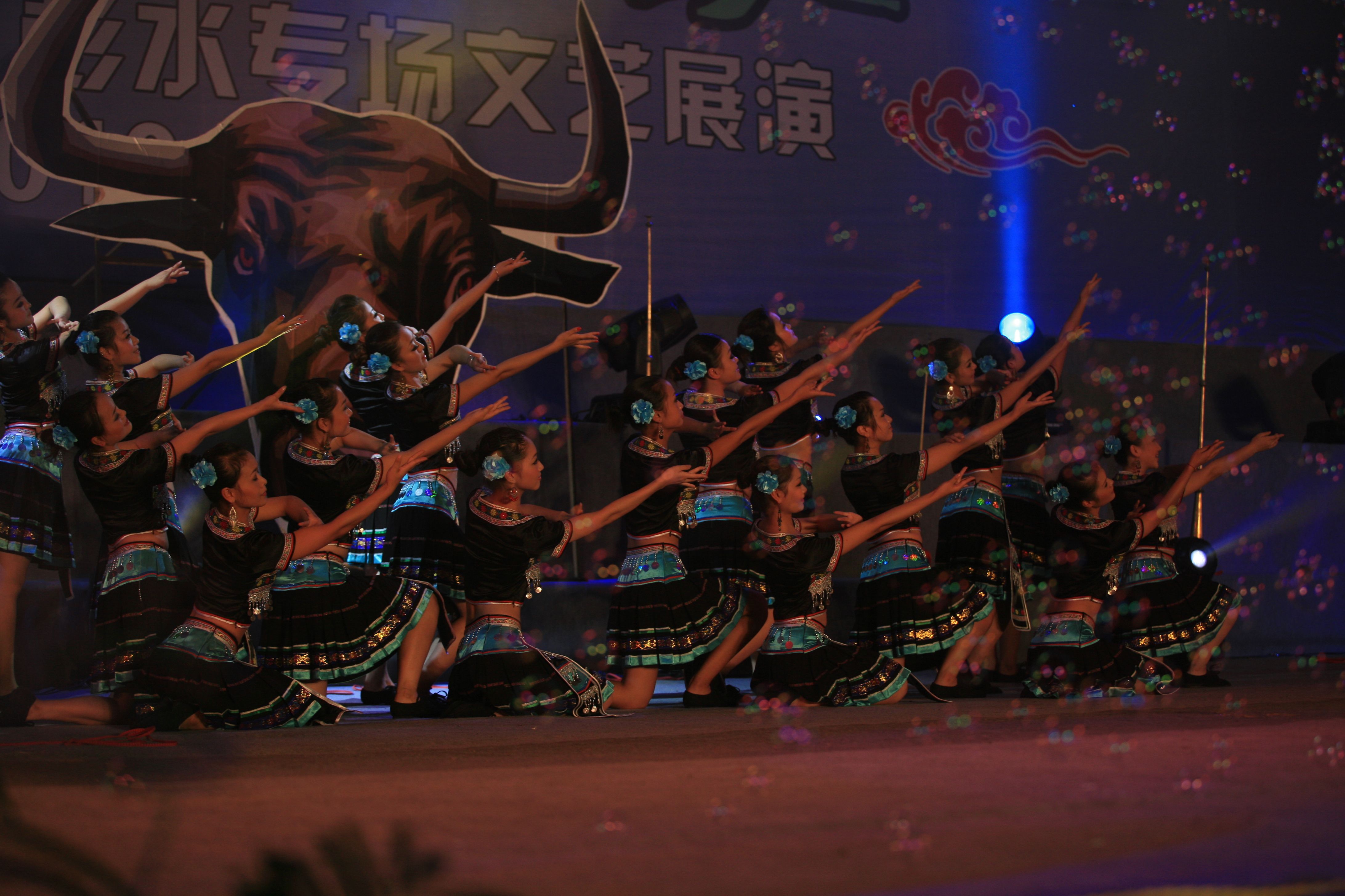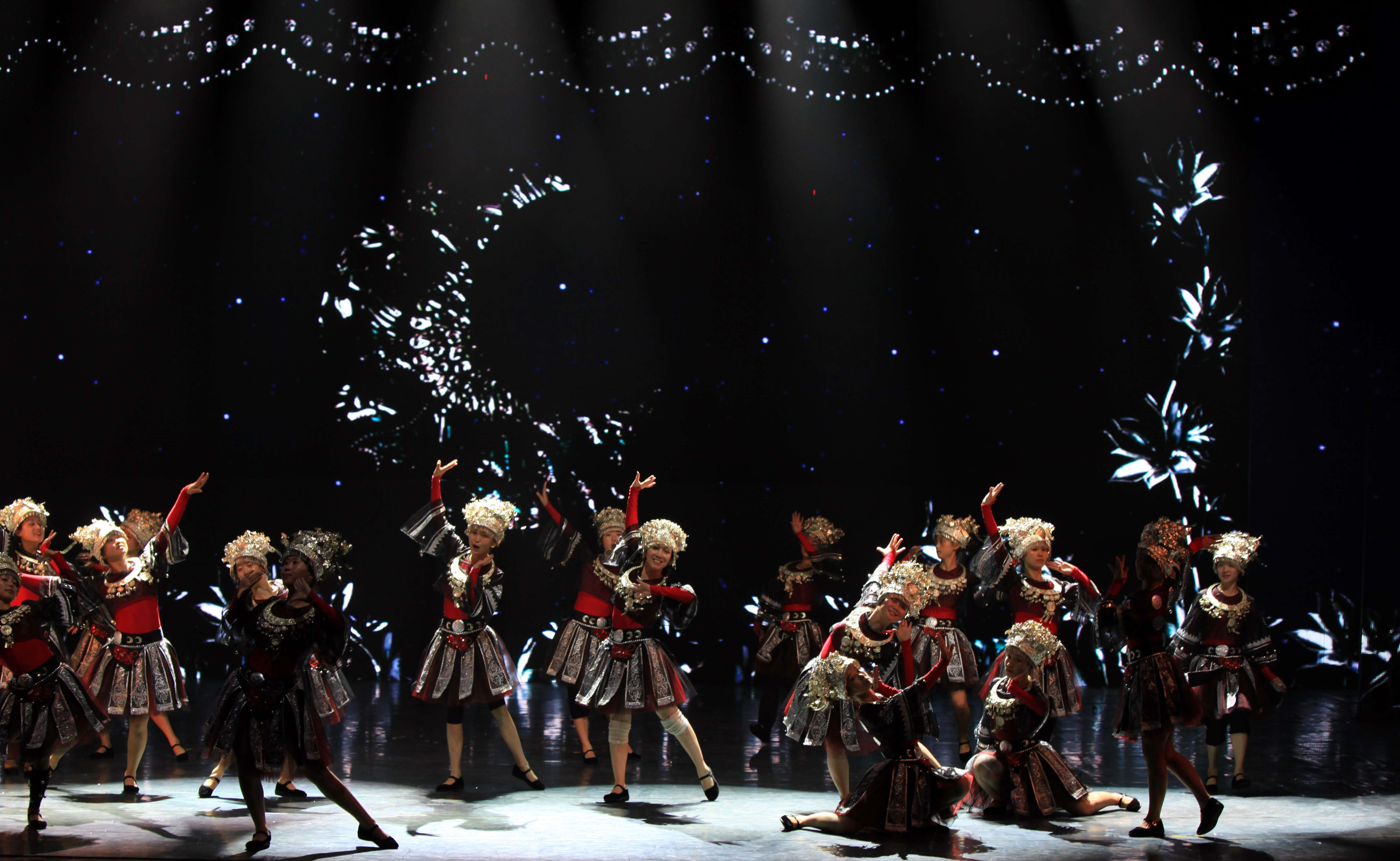 2、苗族女子群舞《銀色的山脊》(時長6分10秒,演員陣容18—24人)