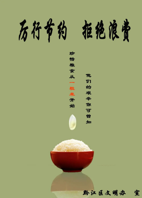 崇尚節約、反對浪費不僅是中華民族的傳統美德,是市民文明素質的具體體現,更關乎國家糧食安全、關乎環境保護、社會發展等。